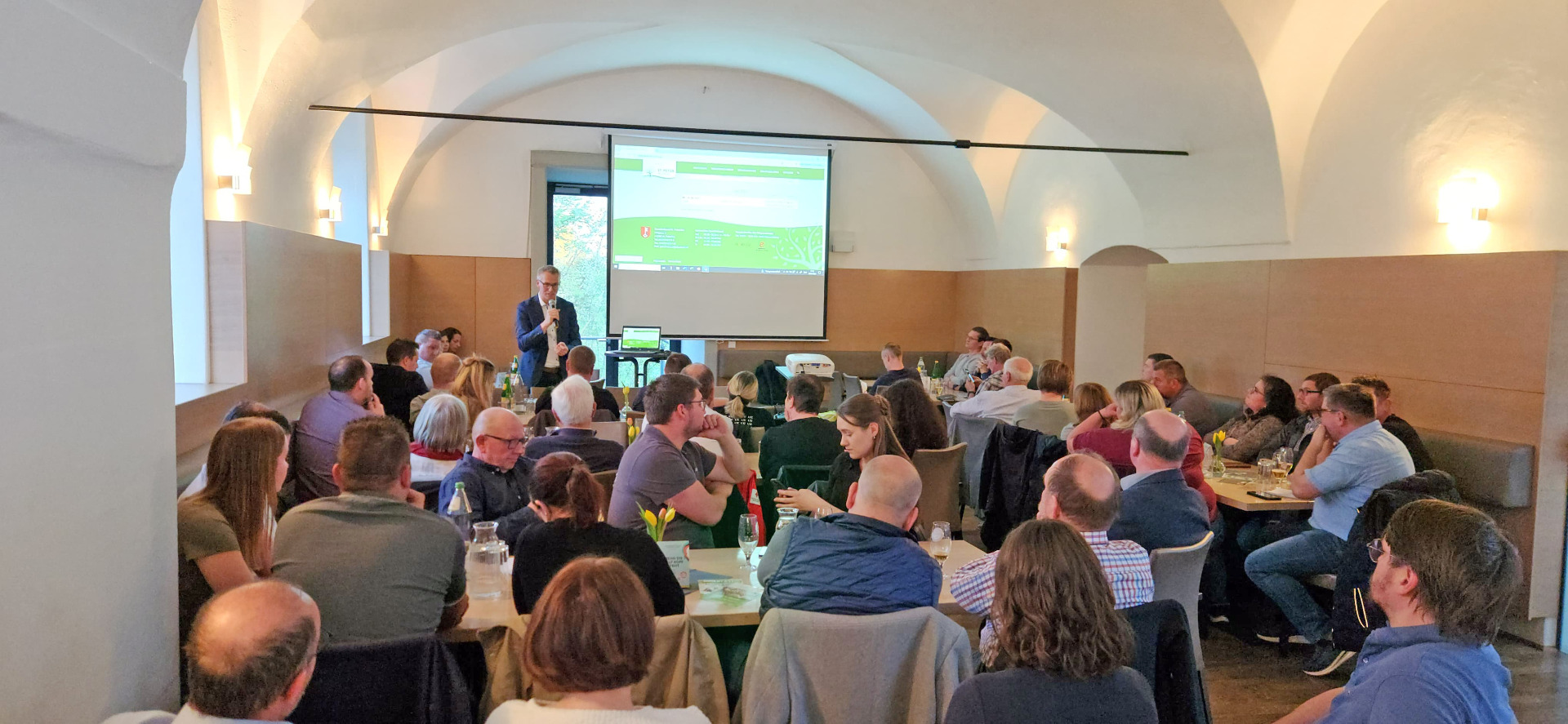 Bürgermeister Johannes Heuras lud am Mittwoch, 22. April, die Vertreter aller St. Peterer Vereine und Organisationen zum Vereinsstammtisch ins Schloss ein. Rund 80 Vereinsverantwortliche und VertreterInnen der Organisationen folgten dieser Einladung. In angenehmer, lockerer Atmosphäre standen vor allem der persönliche Austausch sowie aktuelle Informationen aus dem Gemeindegeschehen im Mittelpunkt.