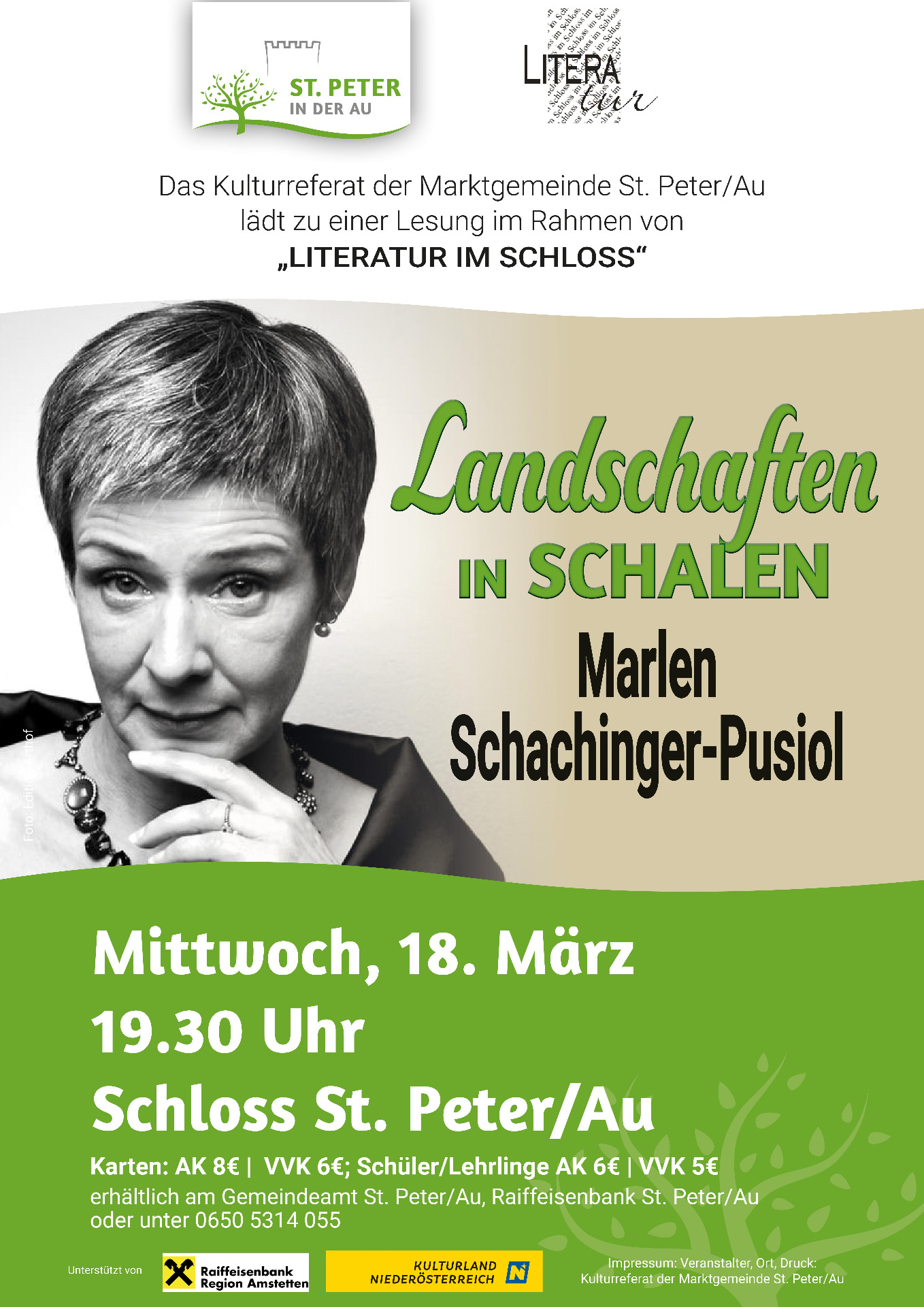 Karten sind am Gemeindeamt, bei der Raiffeisenbank St. Peter/Au und an der Abendkasse erhältlich.