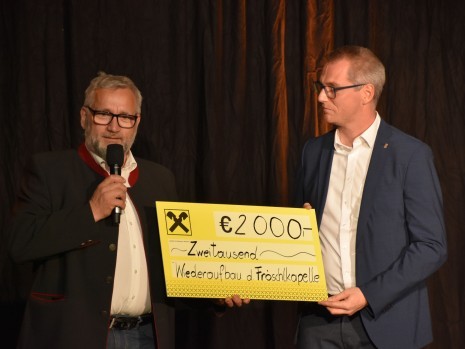 Kabarettist Walter Kammerhofer und die Stockerkogel Tanzlmusi sorgten für ein volles Haus. Der Reinerlös wird für die Errichtung der „Begegnungskapelle“ verwendet.