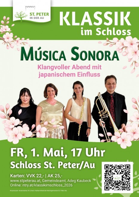 Seit vielen Jahren ist der 1. Mai im Schloss St. Peter in der Au ein musikalischer Höhepunkt. Früher standen vor allem Operettenabende auf dem Programm, seit 2023 widmet sich das Kulturreferat mit der Reihe „Klassik im Schloss“ ganz der klassischen Musik.