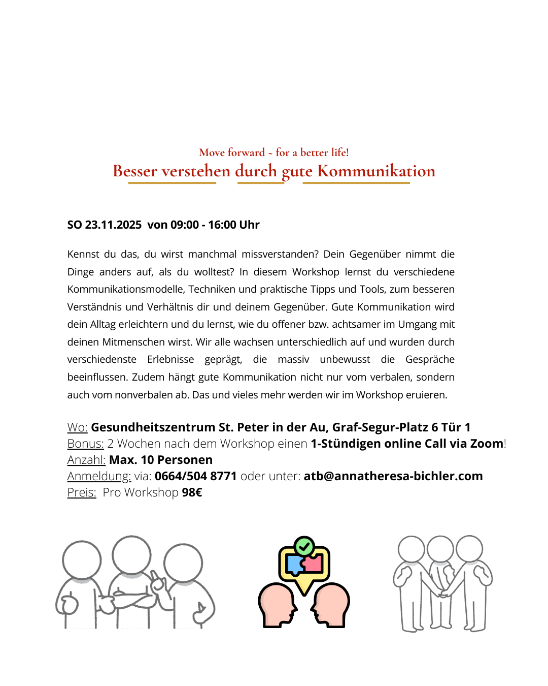 Anmeldung: via: 0664/504 8771 oder unter: atb@annatheresa-bichler.com