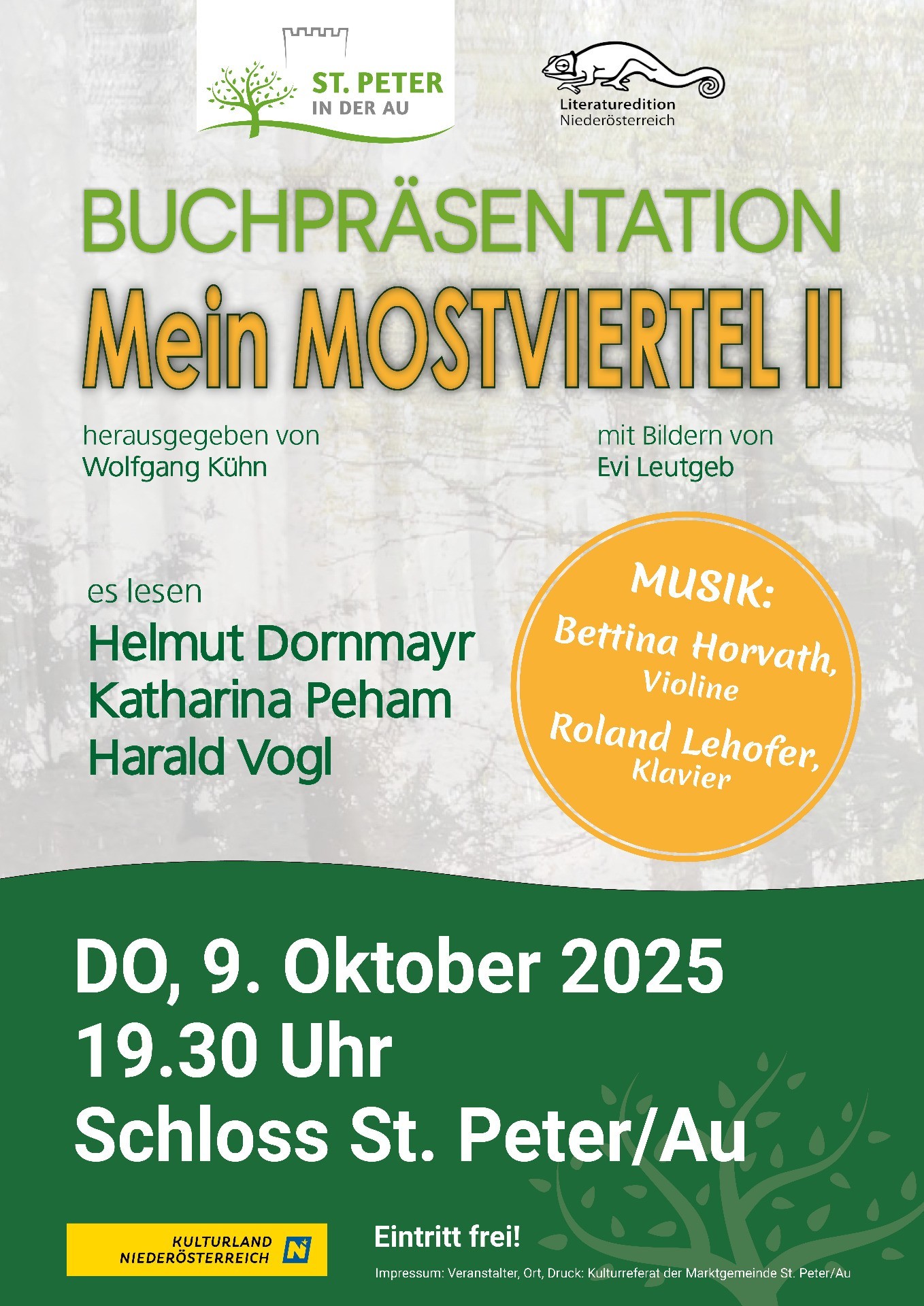 Musikalisch begleitet werden sie von Bettina Horvath/ Violine und Roland Lehofer/Klavier.