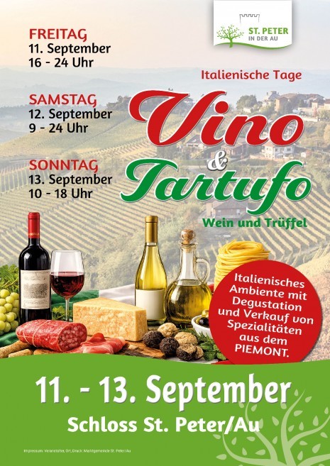 Von 11. bis 13. September ist die Feinschmeckerregion Piemont wieder zu Gast im Schloss St. Peter/Au.
