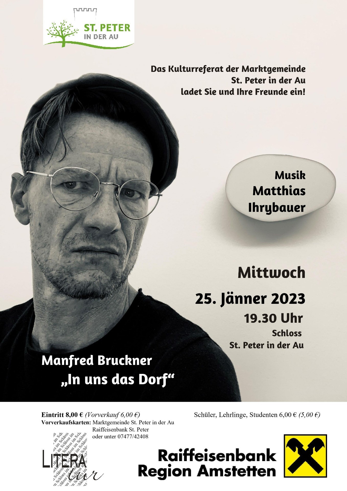Die Lesereihe "Literatur im Schloss" lädt ein zu einer Lesung von Manfred Bruckner.